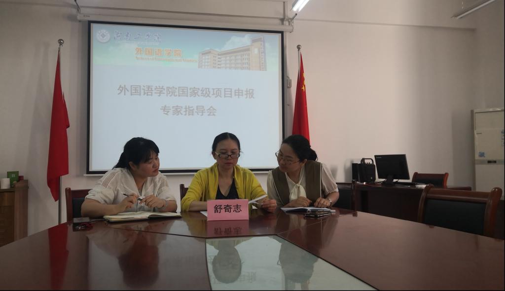 与参会老师互动之后,舒奇志教授又对我院申报国家级基金项目的老师进行了单独指导,提出了很多宝贵的完善建议。(外国语学院)